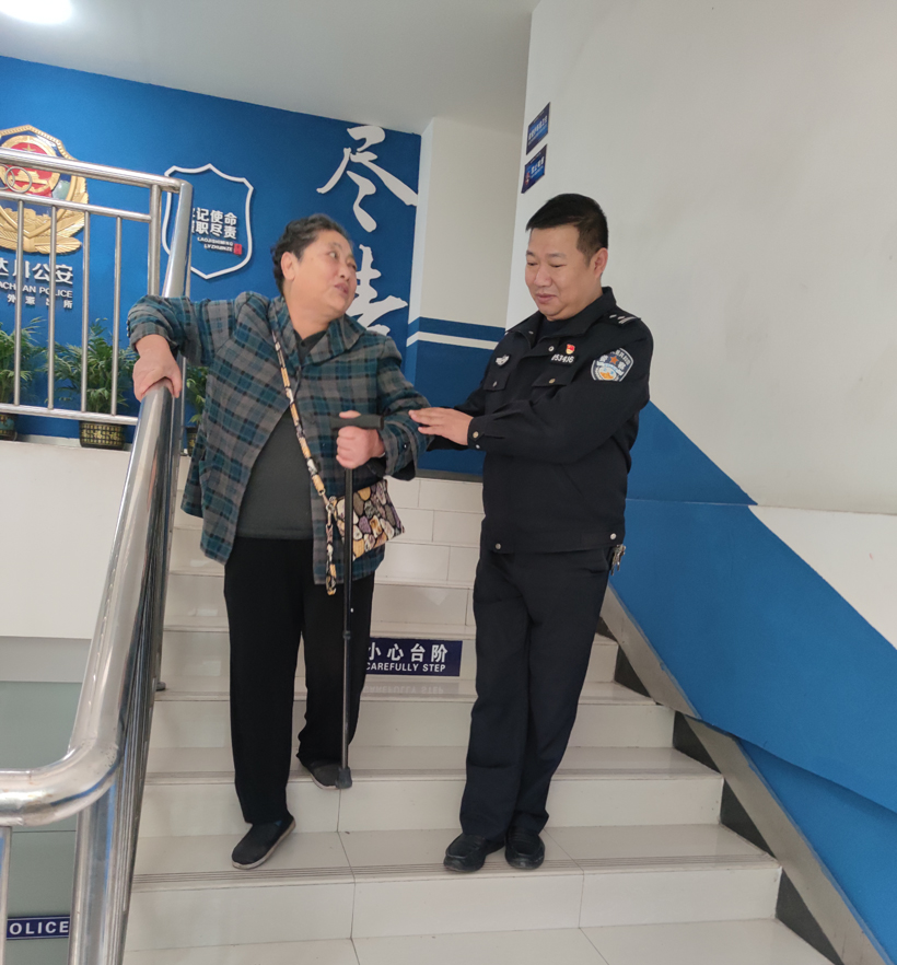 四川法制在线达州讯(王诗傲) 近日,达州市达川区南外派出所一民警在所内发现一手拄拐杖的老人正缓慢往楼梯上走,见到此状,立马上前搀扶老人询问情况,经了解,老人因办事需要置换一个新户口本,但是家里的年轻人工作忙,迟迟没有来办理,所以即使腿脚不便,行走困难,今天还是来了。得知此事后,民警让老人在值班室等候,然后立即驾车到政务大厅帮忙办理新的户口本,办理回来拿给老人后,老人一手拿着户口本,一手握着民警的手连声感谢。随后,民警掺扶着老人走出派出所门口,将其送回了家中。