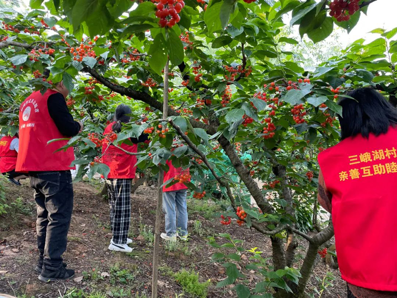 抢救“致富果” 樱桃园里闪耀“中国红”​——三峨湖村志愿者助农采摘解民忧